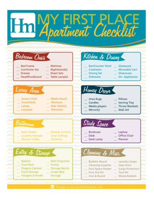 You should prepare lights table blanket and pillow so that all kitchen utensils are available. Apartment checklist helps you to organize your apartment accurately. Sharon greenthal is a writer and editor who specializes in parenting midlife empty nesting and marriage.